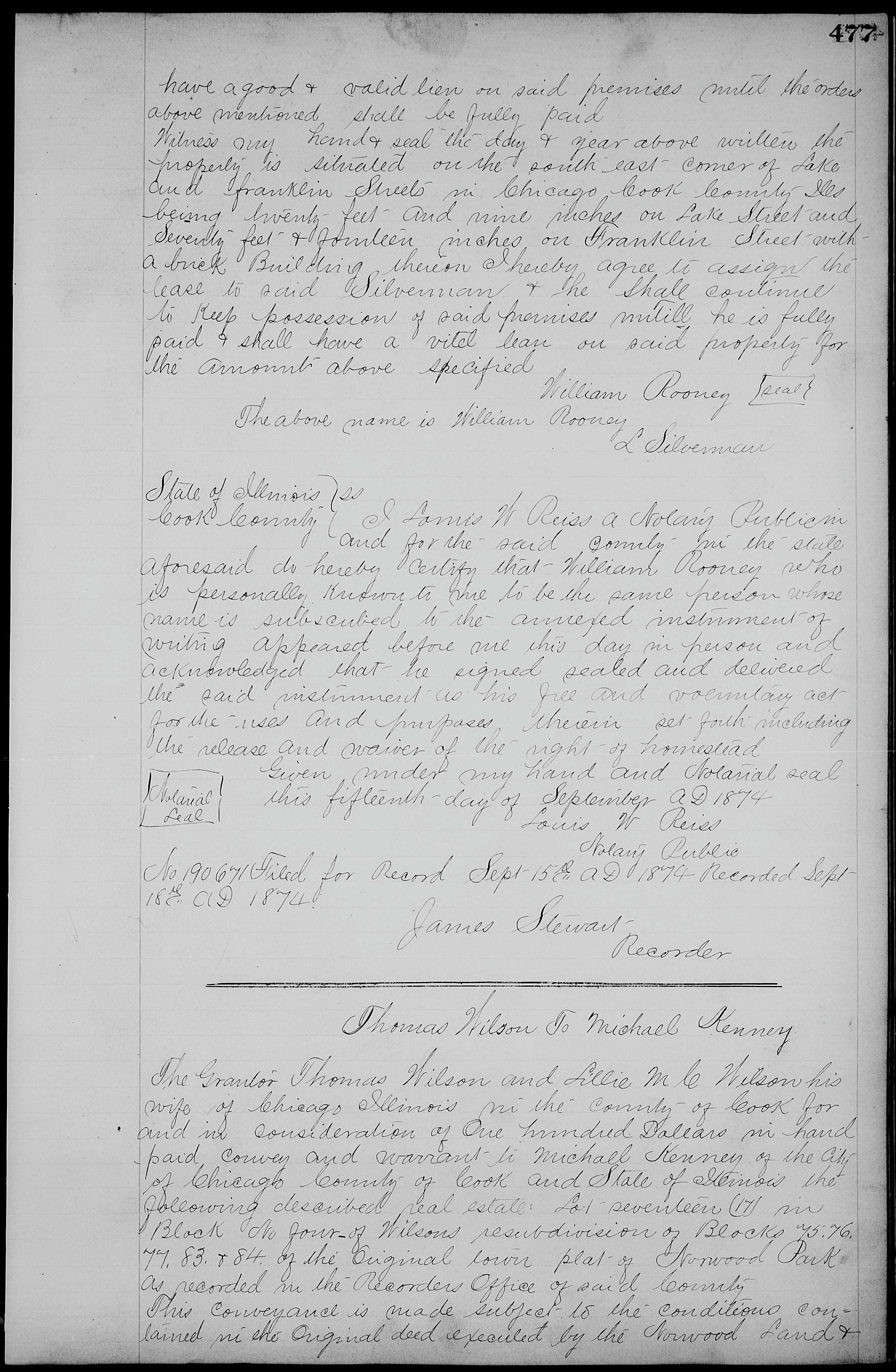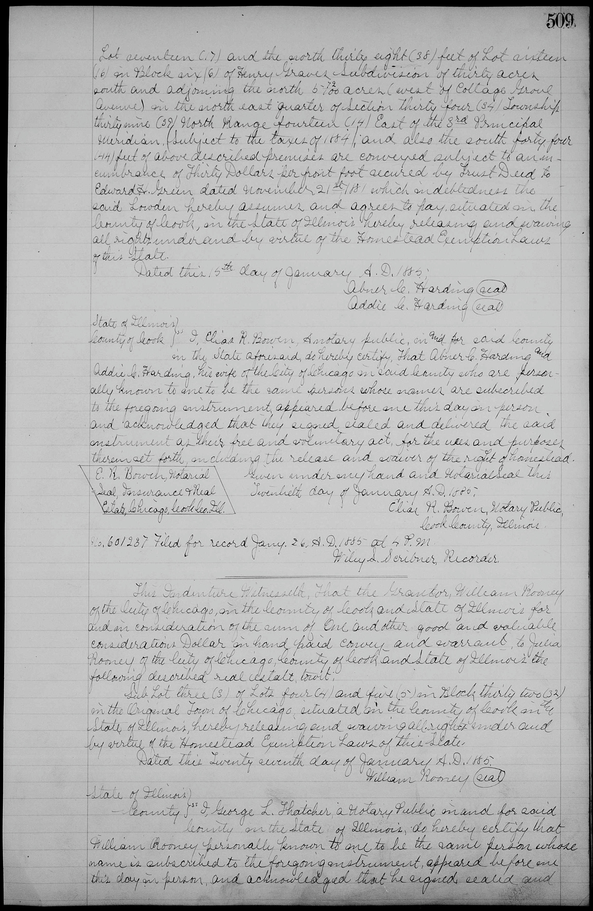 Clemens F. Periolat and wife Mary Jane Frances (Chicago) -> William Rooney (Cook County) |